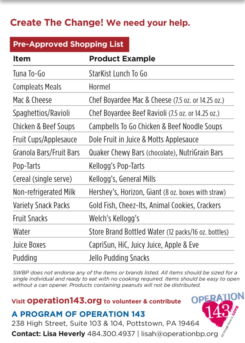 Operation 143 is currently in the Pottstown, Pottsgrove, Boyertown, Upper Perk and Spring Ford School Districts, 31 schools all-together. If you’d like to join us in supporting this ministry, please click the link below. To learn more about Operation 143, visit their website operation143.org.